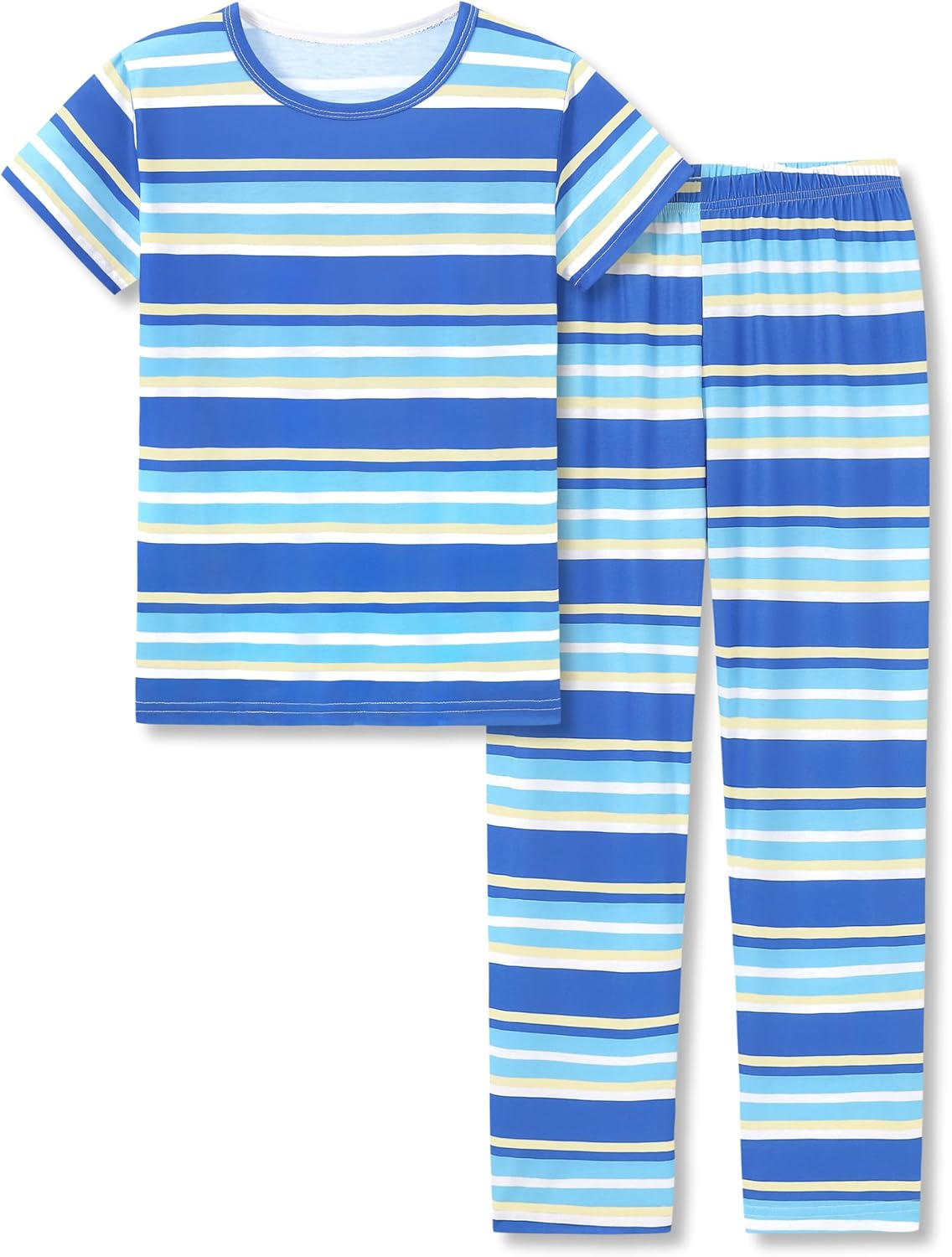 • white-blue-striped-short-sleeves-pants-set